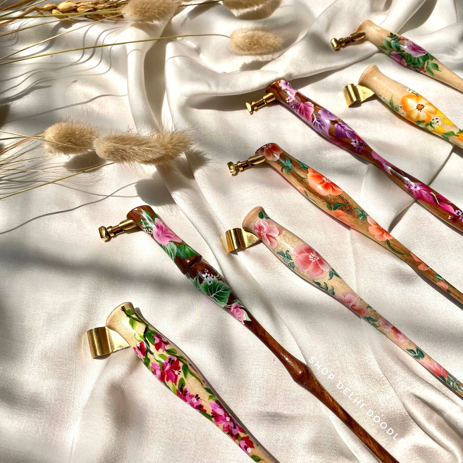 These exquisite hand painted wooden oblique holders are no less than a piece of art in themselves. 💖
